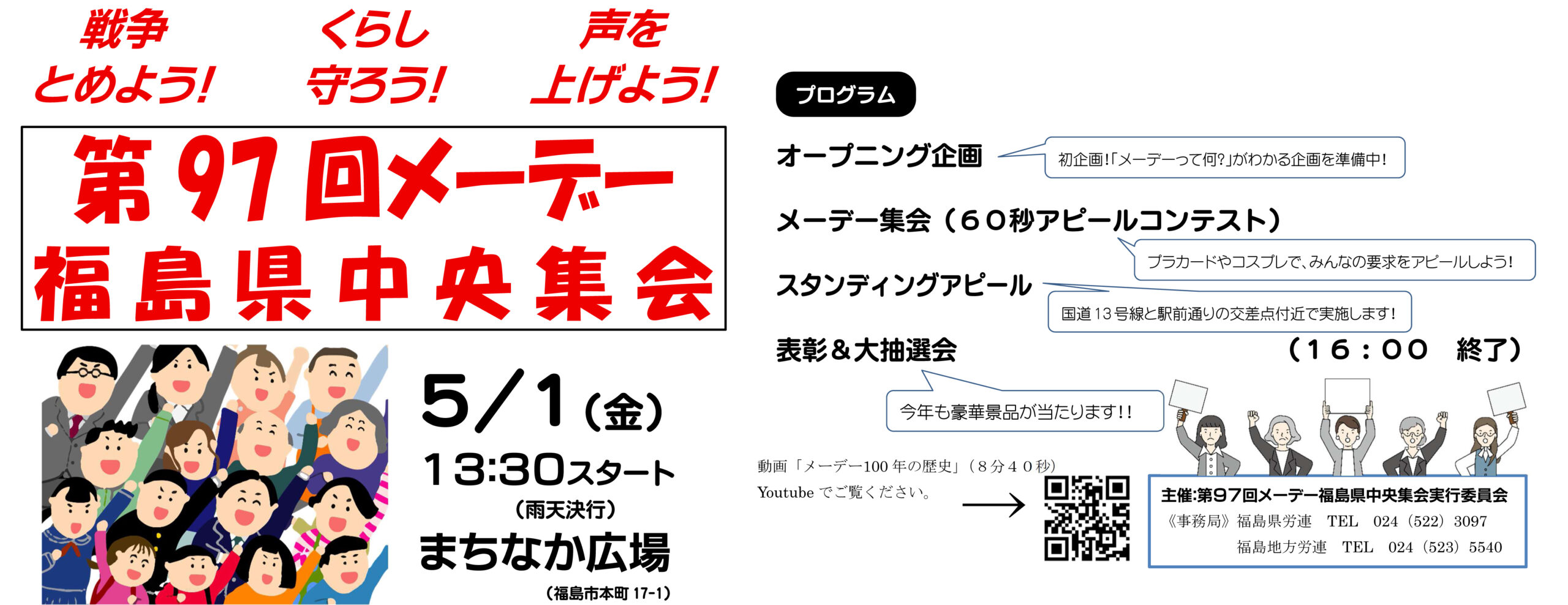 「第96回メーデー」は、5月1日(木)、県内8地域で、集会やデモ行進、スタンディングアピールが実施され、昨年を上回る656人が参加しました。メーデーには「消費税減税・インボイス廃止」「全国一律・1500円以上の最低賃金 […]